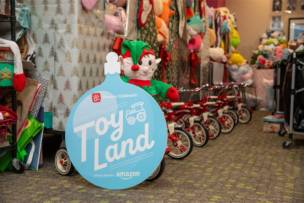 Amazon is the official sponsor of Phoenix Children’s Toyland, providing $50,000 in support each year. At Toyland, families of hospitalized children can “shop” for holiday gifts for their kids— including patient siblings—at no cost, choosing from a wide selection of donated toys and gift cards.