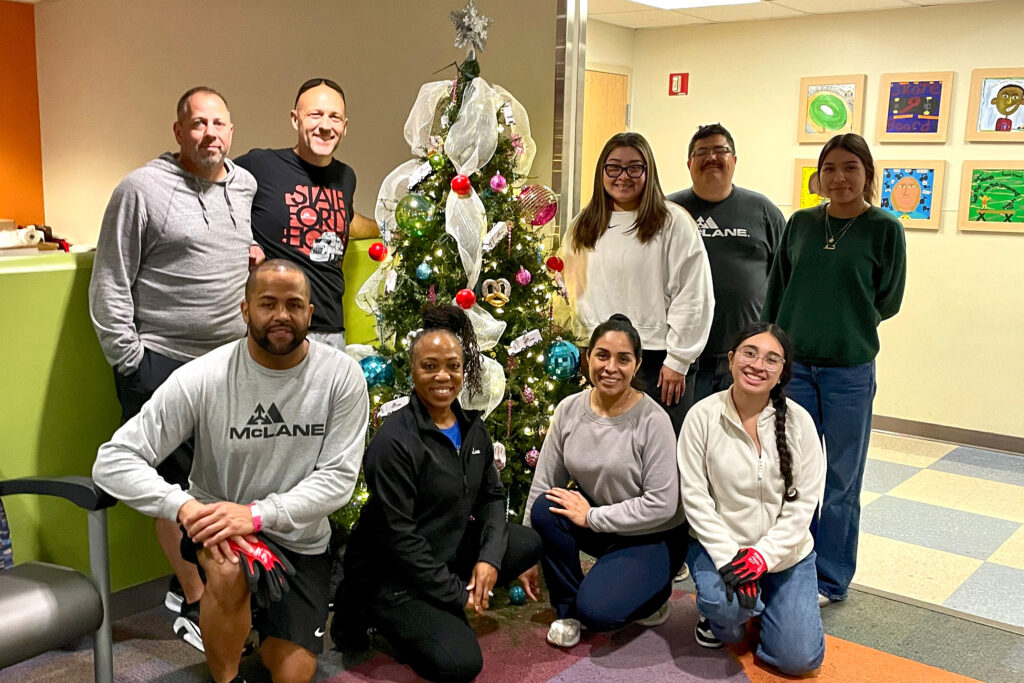 McLane, one of the largest distributors in the U.S., delivers and sets up all of Phoenix Children’s holiday trees. After the holidays, they take down and store the trees, saving the hospital $15,000 annually in storage costs. The project involves a large team of McLane employees and requires two semitrucks to transport the trees.