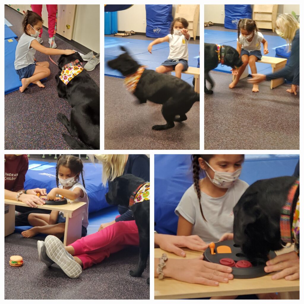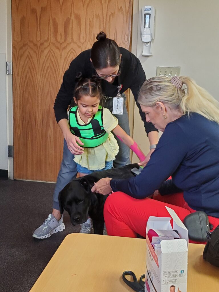 “One of the amazing things we quickly learned about at Phoenix Children's was Child Life,” says Renee. “Unfortunately, this all happened at the height of COVID with heavy hospital restrictions. Child Life came to her and absolutely lifted Addison's spirits to receive these visits and play with the toys and activities. She has also been visited by Checkers, the black lab from Animal-Assisted Therapy. Addie absolutely loves Checkers.”