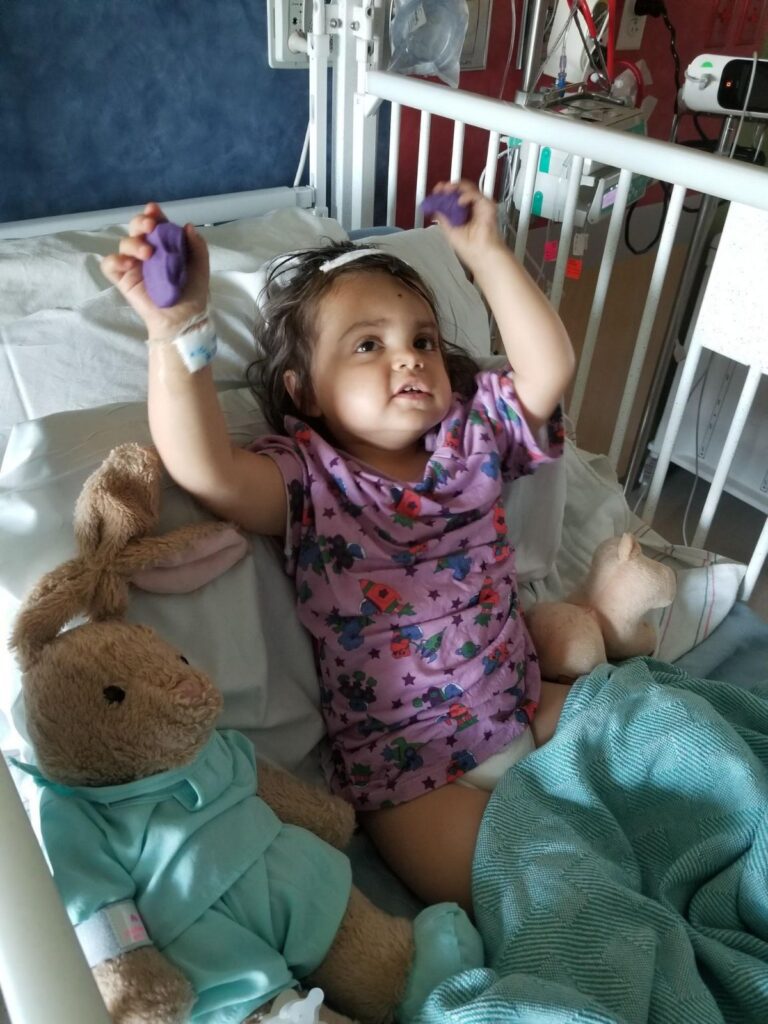 - “The ICU nurses were amazing, professional and knowledgeable. They helped teach Addie what was going on by performing on Addie's doll, ‘Barbara.' Barbara is a stuffed bunny and goes to all of Addie's appointments. She loves all stuffed animals.”Renee and ScottAddison's parents
